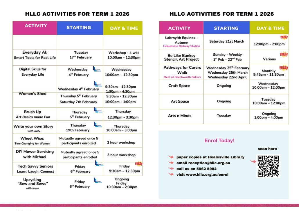 We’ve got classes and activities that help you build skills, make friends and contribute to our community. We’ll also connect you to further work, study and volunteering opportunities